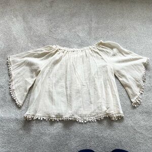 LOVE SHACK FANCY GAUZY SEMI SHEER TASSEL TRIM CREAM TOP BEACHY CHIC BOHO