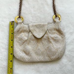 Stunning evening bah in great condition. There are some stains to inner flap, and the chains could use a polish, but the beading is impeccable!