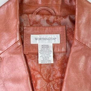 Vintage 90s Worthington Pink Coral Pearl Leather Jacket Fitted Size Medium EUC