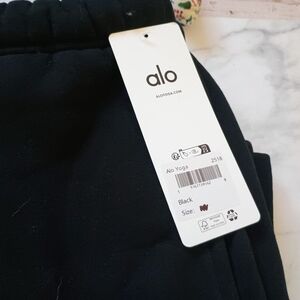 Please no low-ball, and price is kinda firm, they are limited in size and $128 actual price! All new with tags and original packaging. They are very nice quality, fleeced lined straight cut pants from Alo, in size Small please see all the photos to appreciate! Oversized fit with 3d Alo logo on it.