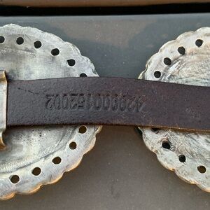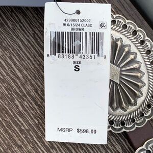 Belt: 0.5" (16 mm) wide. Tallest metal accent: 2.75" (70 mm) wide.