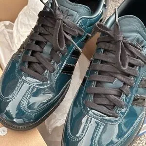 Elevate your look with these Adidas sneakers. Dark green with black accents. Stylish and comfortable for everyday wear.
