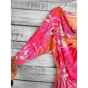 Boston Proper Slouchy Pink Floral Top Gathered Waist Mob Wive XXS Bright Resort