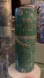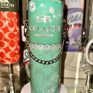 Stylish green bottle New York. Features a chic chain detail.