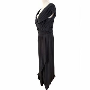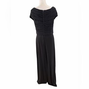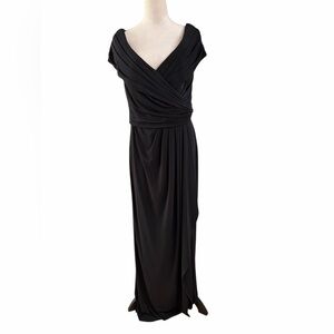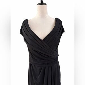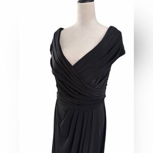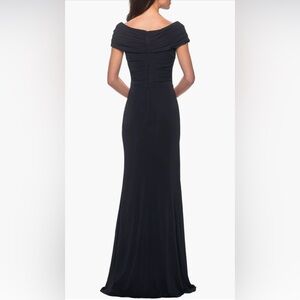 La Femme Ruched Jersey Long Gown with V-neckline black Dress