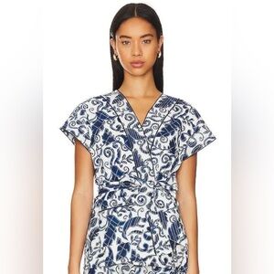 Cleobella Womens Tayla Cotton Quilted Wrap Vest Top in Azulejo Size Medium