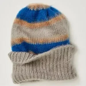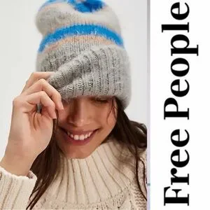 Elevate your winter look with this striped beanie from Free People. Soft gray with bold blue accents. Perfect for chilly days.