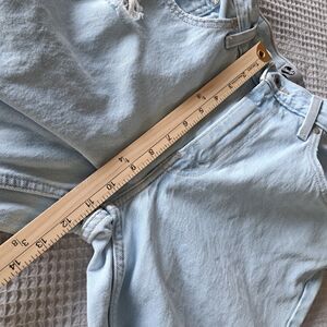 Stylish Levi's boyfriend jeans. Light blue with distressed details. Comfortable and trendy fit.