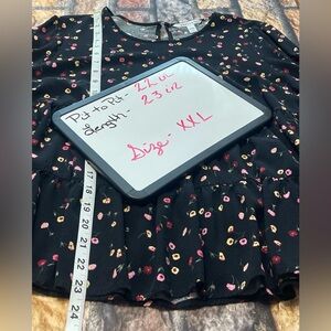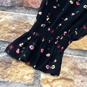 Popsugar Women Floral Babydoll Blouse Long Sleeve Black Sz XXL Fairy Boho Flowy