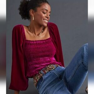 Excellent condition Anthropologie velvet smocked top with long peasant sleeves