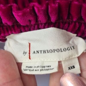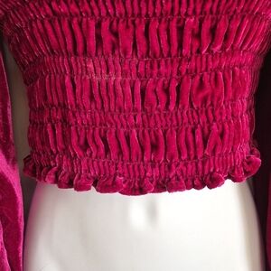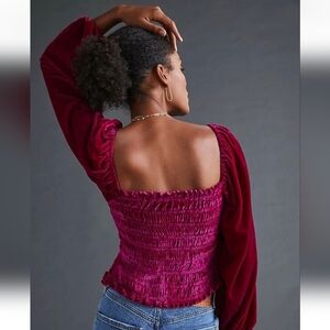 Anthropologie Raspberry Magenta Deep Pink Velvet Smocked Long Sleeve Top XXS