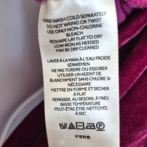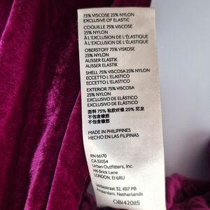 Beautiful deep magenta / raspberry reddish pink color. Luxurious feeling velvet fabric with some stretch.