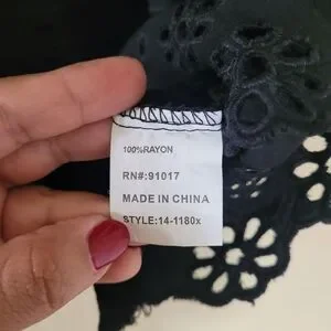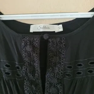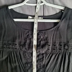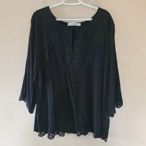 Solitaire Peasant Black Top Tunic Womens 3x Bohemian Kimono Sleeve Eyelet Boho