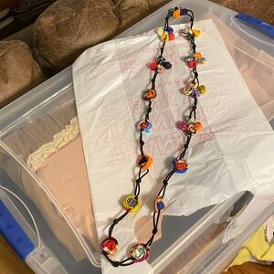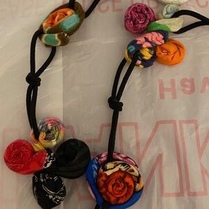 Like new! Sharp cloth material necklace by Ficklesticks, 20” long, stretchy so you can double loop! Sharp piece very versatile!