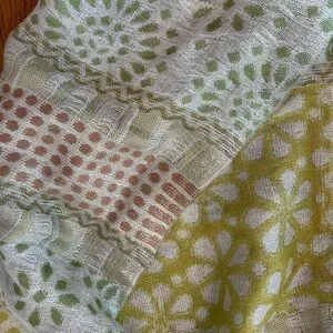 Pretty floral and stripe scarf from Ann Taylor Loft with gold metallic threads woven throughout. Perfect to throw on over a dress on a summer evening. 67” long. 22” wide.