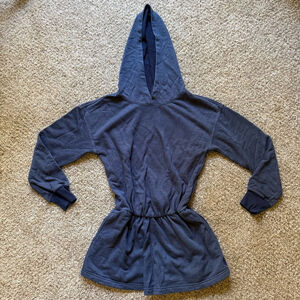 Your new go-to for to-from, this comfy romper is featured in a hooded, long-sleeve style with relaxed shorts and an unexpected open back for the perfect peek of skin.