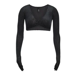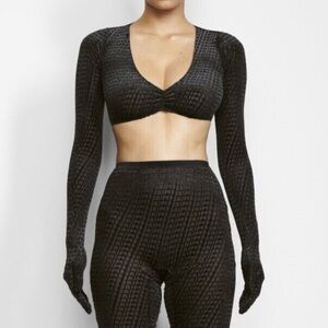 Skims Velvet Crop Top Logo 2X Soot Black Plus Size Logo Burnout Open Bust