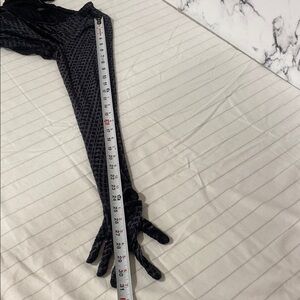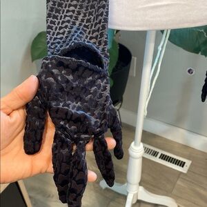 Stylish black gloves with a unique pattern. Perfect for adding a touch of elegance.