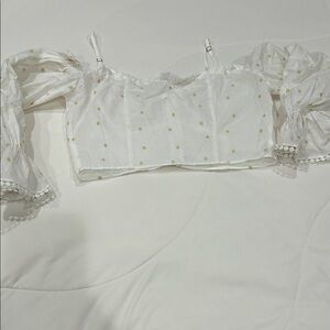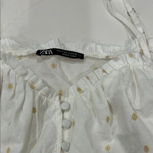 Zara White and Gold Polka Dot Cropped Blouse
