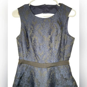 Reiss Natalie Blu Jacquard Lace Fit And Flare Dress Size 8 Navy and Black.