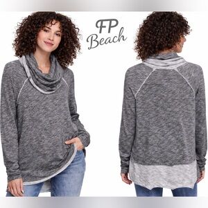 Free People Beach Cowl Neck Long Sleeve Top XS Heathered Gray