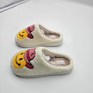 MIA Girl Smiley Face Slippers Cozy Sherpa Lined House Shoes Women Size 6