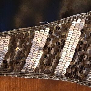 This stunning vest is made from 100% silk (front) and is in great condition with very minimal signs of wear on the back and the belt. Hanging loop have been cut out as well. Please see pictures. The beading and embellishments are intact.