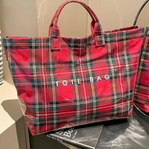 Red Tartan Plaid Tote Bag Large Tear Resistant Paper Shopper Travel Carryall New