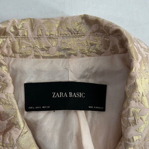 Zara blazer Gold jacquard jacket elegant pretty business casual event sz lg