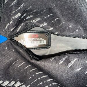 Stylish Tumi duffel with unique black and gray design. Perfect for travel.