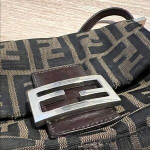 Super rare vintage Fendi bag. This is the MINI Mama Baguette style! Features the iconic Fendi monogram branding. In good vintage condition! Could use an edge touch up on the leather strap.