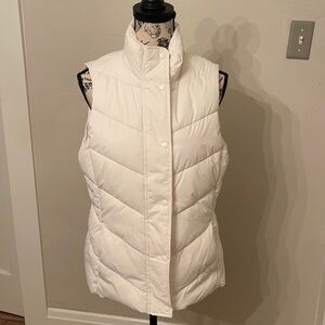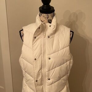 EUC Gap white vest with full zip and snaps. Size medium. No imperfections noted. Perfect for a cool spring or fall day. Shoulder to shoulder approx 14 inches. Pit to pit approx 19 inches. Shoulder to bottom approx 24.5 inches.