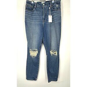 NWT Good American Good Legs Crop Distressed Knee High Rise Skinny in Blue 18.