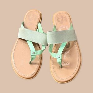 Sorel Green Leather & Suede Slip on Sandals