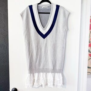 Anthropologie Varsity Short Sleeve Twofer Mini Dress Grey Size Medium NWT