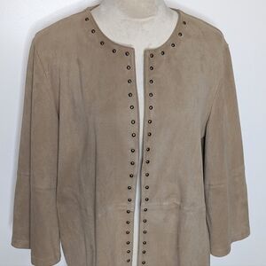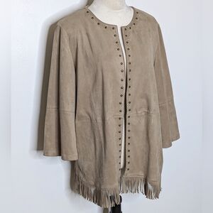 Allison Daley Faux Suede Open Front Western Tan Fringe Silver Studs Jacket Large