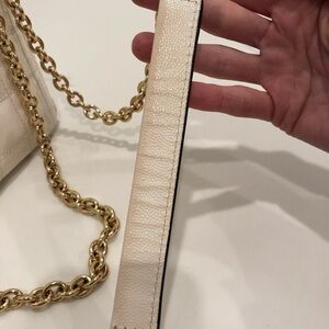 Stylish Michael Kors crossbody bag. Cream design with gold studs. Elegant gold chain strap.