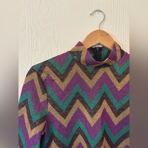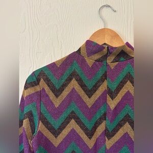 Imperial Purple, Green, Black and Gold Metallic Multicolour Mock Neck Long Sleeve Top