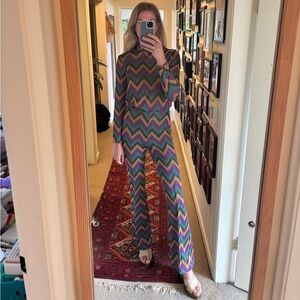 70’s Inspired Disco Metallic Multicolour Zig Zag Flare One Piece Jumpsuit Set