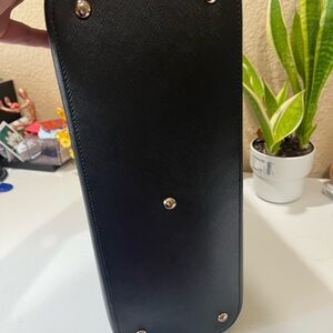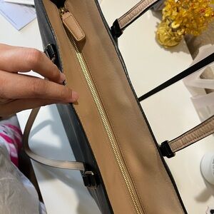 Authentic pre-loved. Black zippered tote perfect for everyday use. Leather rubs on handles.