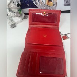 Experience the epitome of luxury with MCM's red leather wallets, featuring a vibrant hue and exquisite gold-tone hardware. Crafted from fine-grain textured leather, these wallets offer a sophisticated touch to any ensemble.