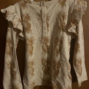 KQ - 2021 cotton - girls size 6 yr - pineapple ruffle shoulders top - new - received in a mystery bag and we don’t love those colors here