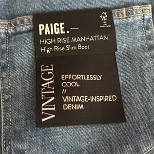 NEW PAIGE High Rise Manhattan Vintage Slim Boot Vintage 27 Tall Blue Denim Jeans
