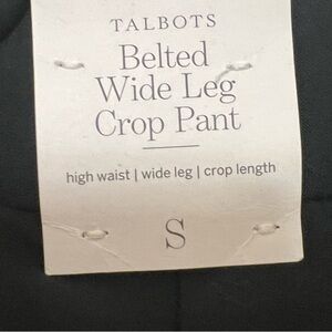 Talbots black belted wide leg crop pants in size small. High-waisted fit with a flattering wide leg silhouette and removable waist tie. Clean, tailored look that works for the office, travel, or dressed up casually with flats or heels.