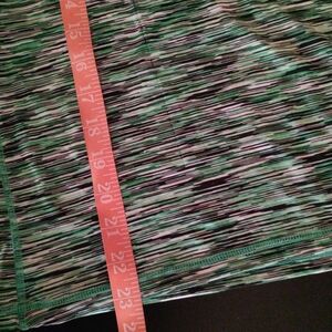 Performance athletic top by Head, size XS. It features a fitted silhouette with a double-layered V-neckline and dynamic horizontal streak pattern in green, black, white, and gray. Made of lightweight, moisture-wicking polyester—ideal for workouts, yoga, or casual wear. Shirt only.
