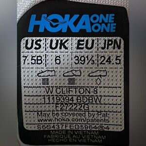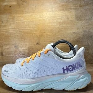 Hoka One One Clifton 8 Womens Size 7.5 Running Shoes Sneakers White Purple