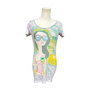 Custo Barcelona Vintage Y2K Printed Graphic Scoop Neck Cap Sleeves Top Size 3