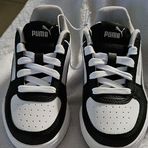 Puma Kids Black White Gray Court Sneakers Casual Sporty Low-Top Design Size 12