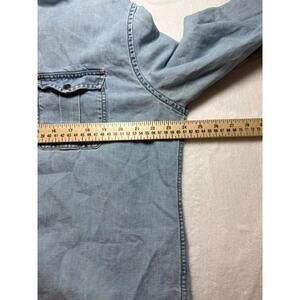 This Vintage Willis & Geiger Shirt is a classic and versatile piece perfect for casual occasions. Made from a comfortable blend of linen and cotton, this button-up shirt features a solid blue color with a collared neckline and long sleeves. The shirt is adorned with safari and hunting-inspired accents, giving it a unique and stylish look. With its lightweight fabric and breathable design, this shirt is suitable for all seasons and offers a comfortable fit for a regular size large. The strap accents and western theme add a touch of flair to this timeless piece from a renowned brand.