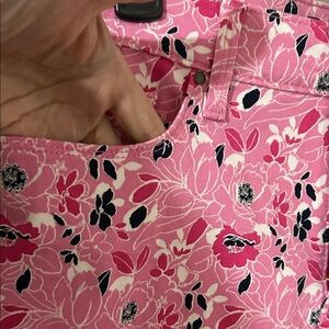 Stylish pink cropped pants with a vibrant floral pattern. Perfect for a chic look comfortable fabric, machine washable and in NWOT condition.